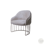Es perfecta para salas contemporáneas, dormitorios o espacios que necesitan una pieza atemporal y cómoda, esta butaca destaca por su forma envolvente y base metálica tipo con varillas que aportan ligereza visual sin sacrificar estabilidad.
